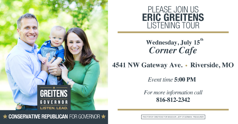 Greitens Listening Tour by Jim Rooney Sunday, July 12, 2015 Calendar, Events, Featured, In The News, News Eric Greitens, Republican for Governor, Listening Tour.